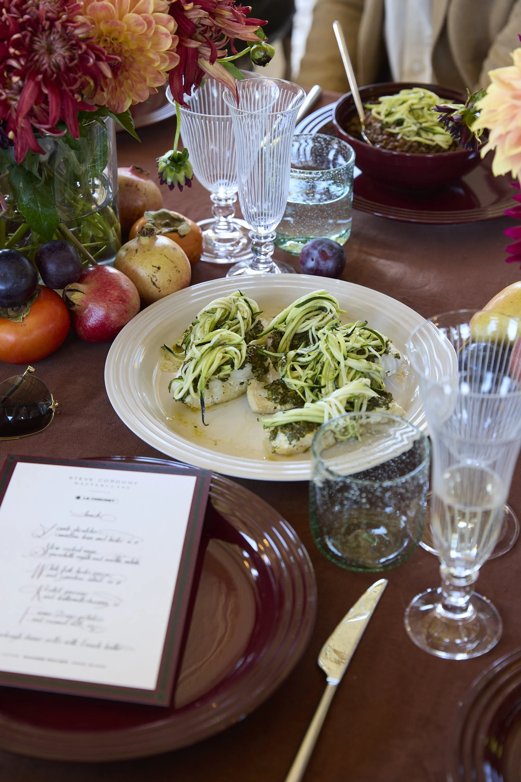 After the room was complete, guests were let loose throughout the house for a tour of each and every space, before being inspired for the change of season, demonstrating how to style a decadent layered tablescape using Le Creuset’s Coupe collection in the Flint colour way.