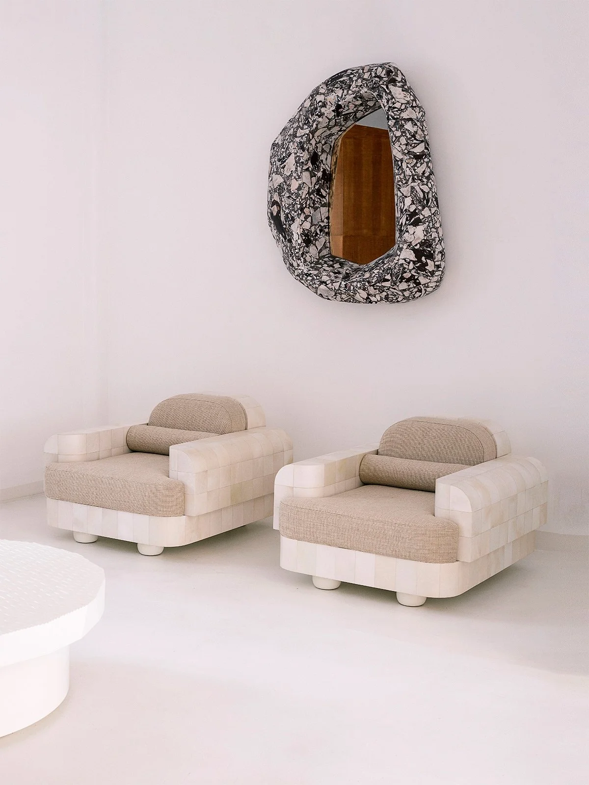 An otherworldly atelier filled with voluminous shape furniture and sculptural lighting around the corner from Jardin du Palais Royal